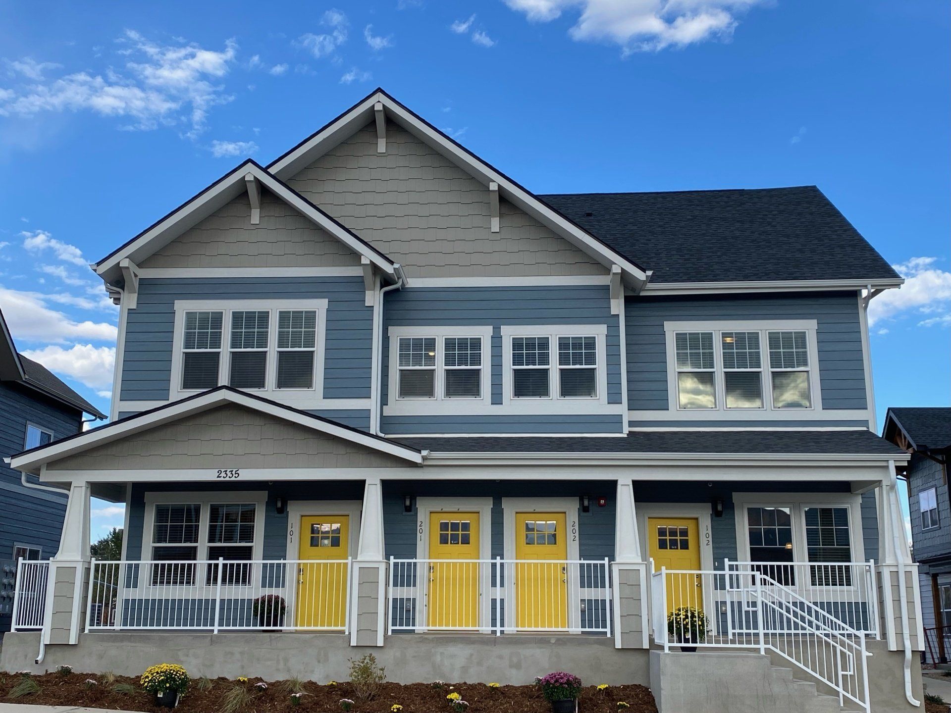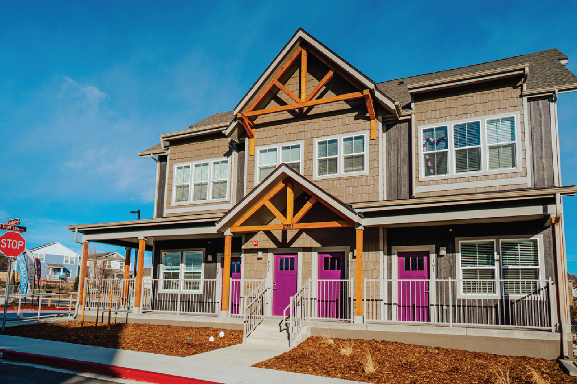 Experience townhome-style living with front porches perfect for morning coffee, shared backyards for weekend volleyball, and a huge fenced-in dog park where your pets can run free.